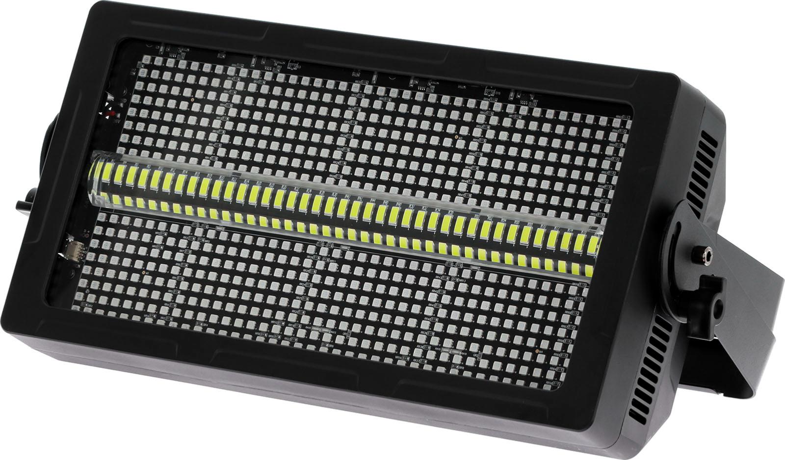 Le BLZ STROBE est un puissant projecteur qui combine un stroboscope 8 zones équipé de 80 LED blanches et de 640 LED RGBW réparties en 4 zones supérieures et 4 zones inférieures pour éclairer et générer des effets sur tous vos évènements. La rangée centrale de LED blanches haute puissance délivre des effets stroboscopiques nets et intenses, mis en avant par un tube optique traversant. Les animations de défilement, de chases et de flash synchronisés renforcent les moments clés de votre show. La matrice Wash RGBW à 8 zones indépendantes, située de part et d'autre du stroboscope central, génère des couleurs vives ou pastels, des animations dynamiques et des aplats puissants, ajoutant de la profondeur à la scène. La combinaison du stroboscope blanc ultra percutant et du Wash couleur matriçable est idéale pour enrichir toute scénographie, aussi bien en club qu’en configuration scénique ou événementielle.