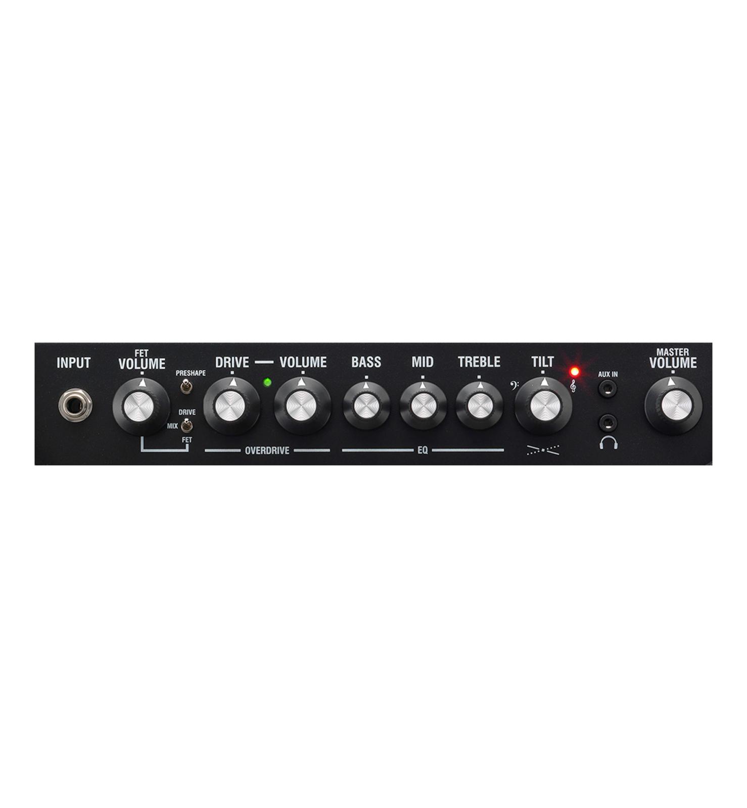 Combo basse DBF50, amplification 50W Class D, 1x HP 10" HH Blue Audio, 2 canaux mixables (FET/DRIVE) et commutables au pied grâce au FS1-Mini (optionnel), EQ 3 bandes, fonctions TILT et PRESHAPE, volume Master, sortie XLR DI Out, sortie casque 3.5 mm, entrée auxiliaire 3.5 mm, boucle d'effet, prise footswitch,