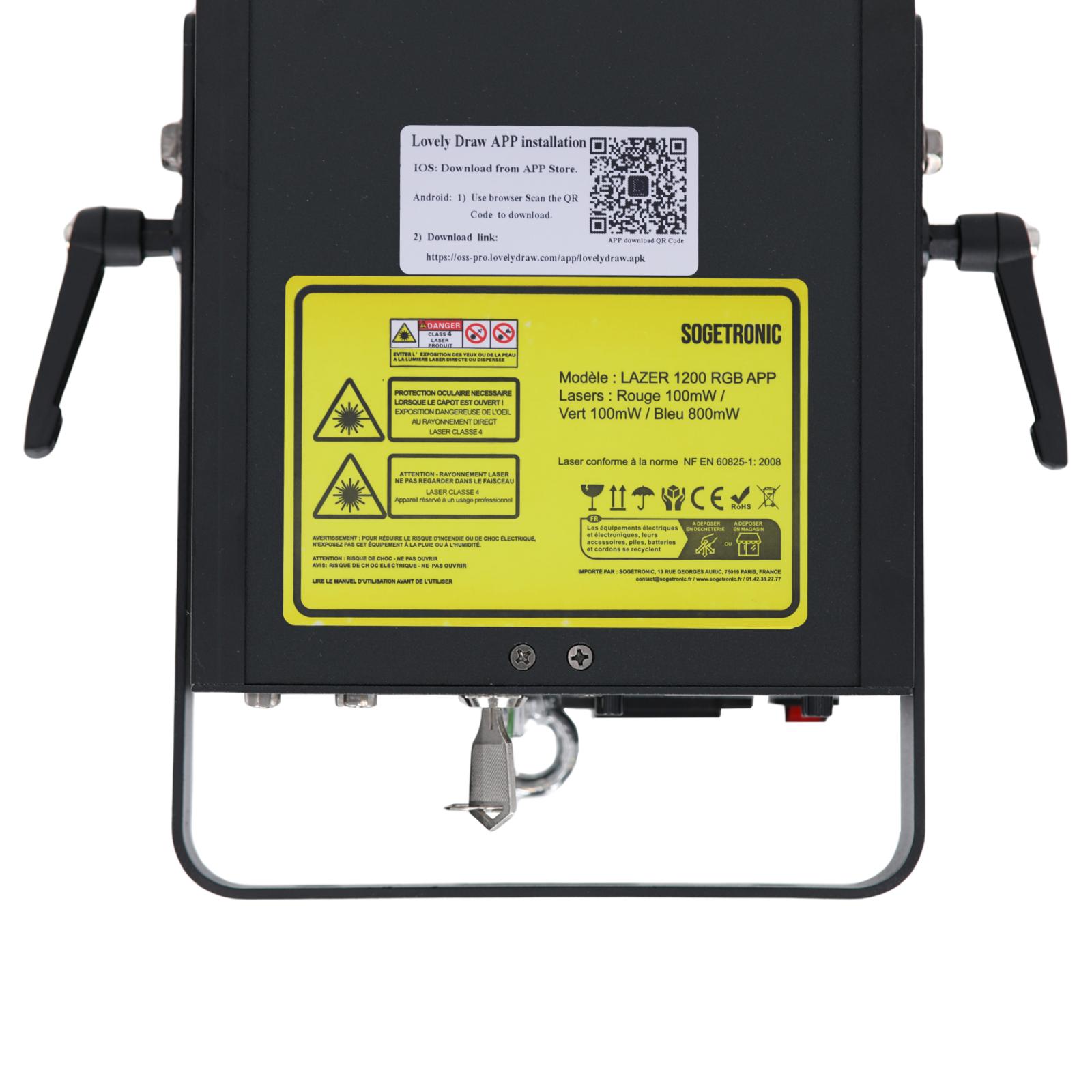 Le LAZER 1200 RGB APP combine puissance (1000 mW), effets multi-programmés et contrôle professionnel pour sublimer vos événements. Grâce à ses diodes haute stabilité, son scanner rapide à 25 KPPS et ses modes DMX, Auto, Son, ILDA, ainsi que son pilotage via application, il offre des performances visuelles fluides et immersives. La fluidité des couleurs et la précision du faisceau sont particulièrement réussies et très appréciables grâce à ses scanners nouvelle génération.