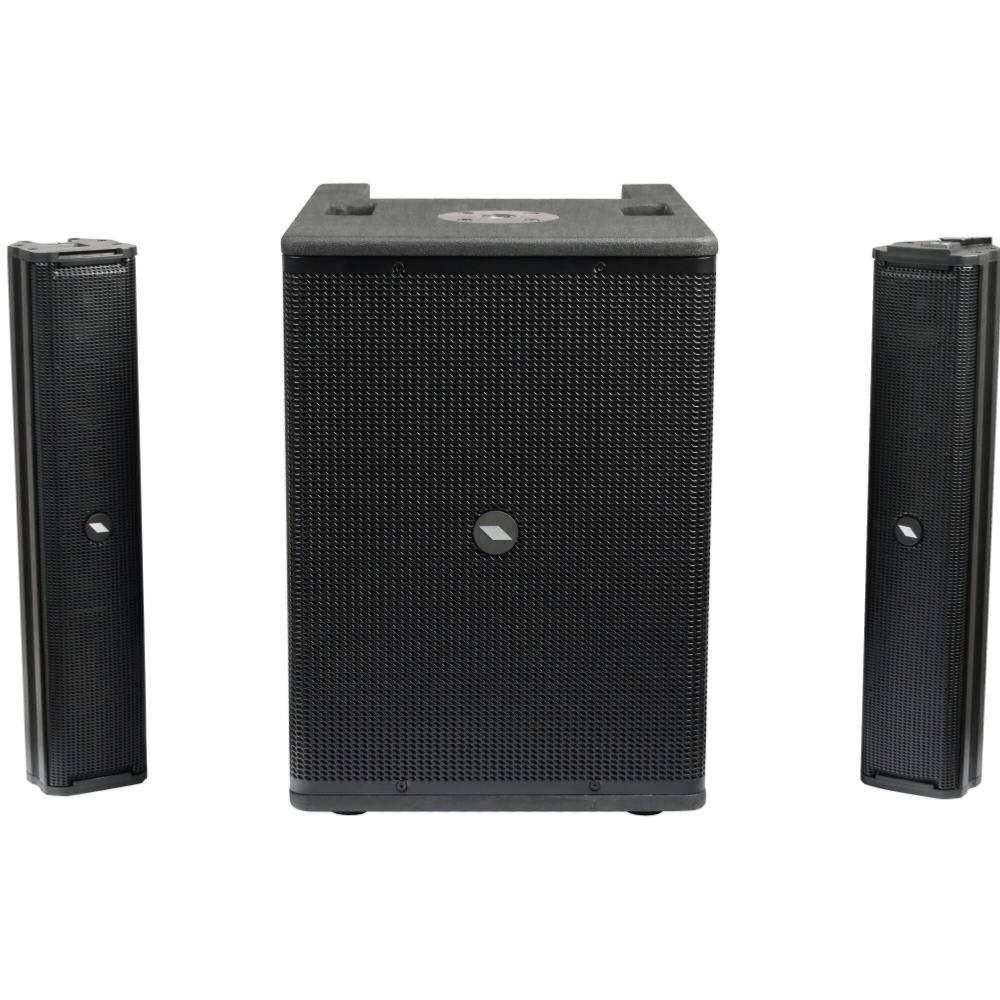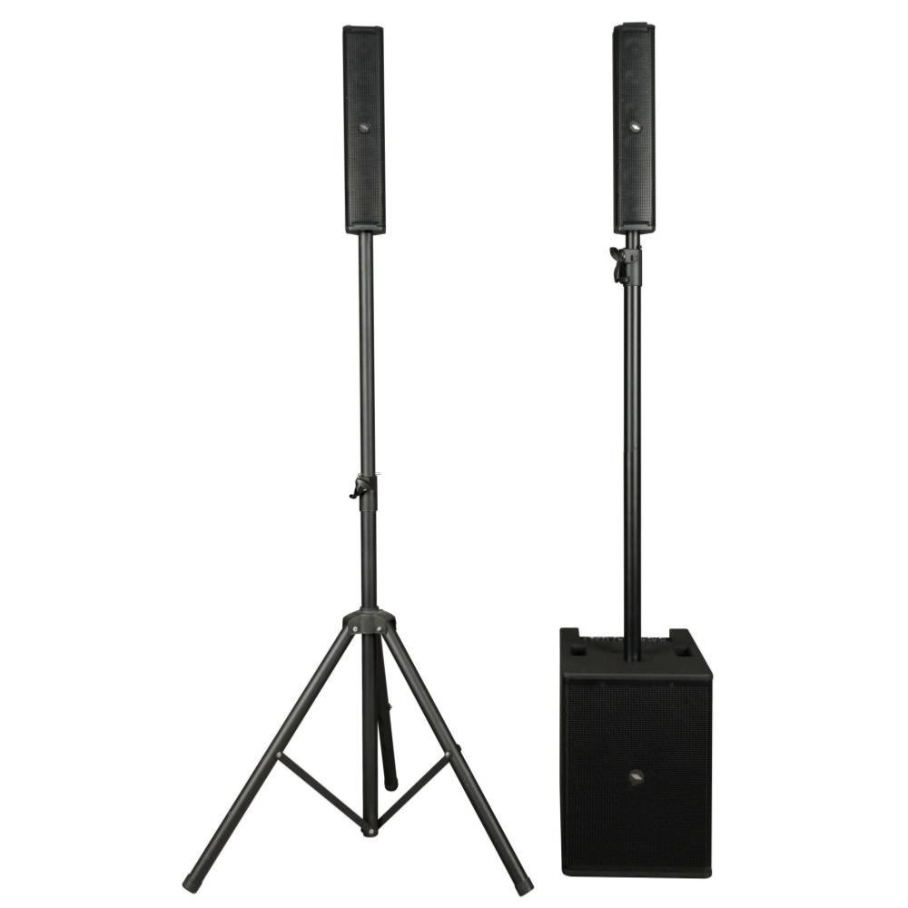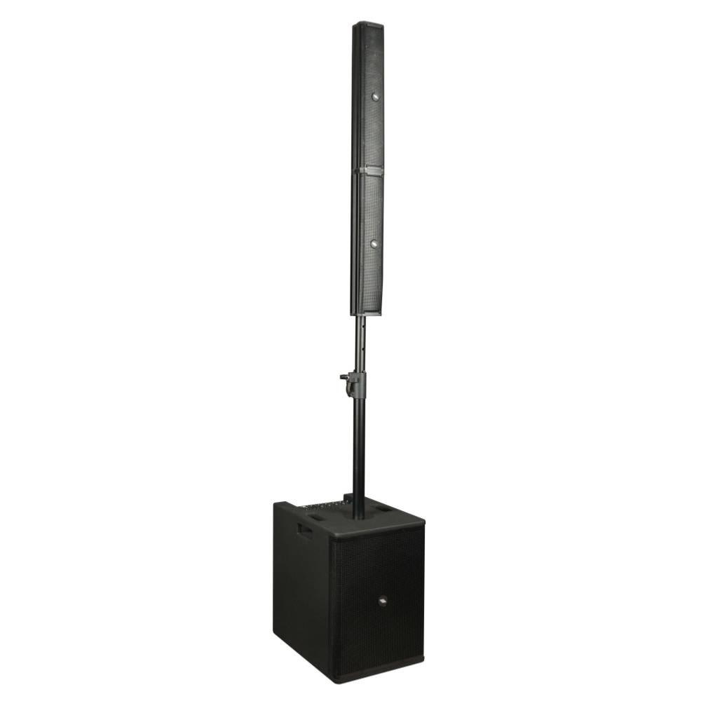 Système audio à 3 canaux en colonne. - Puissance de crête de 1400 W. - Console de mixage numérique 6 canaux avec effets. - Processeur numérique (DSP) avec préréglages. - Contrôle via application Android ou iOS. - Modes stéréo et mono. - Bluetooth. - Câble SPEAKON et sac de transport pour enceintes satellites inclus.