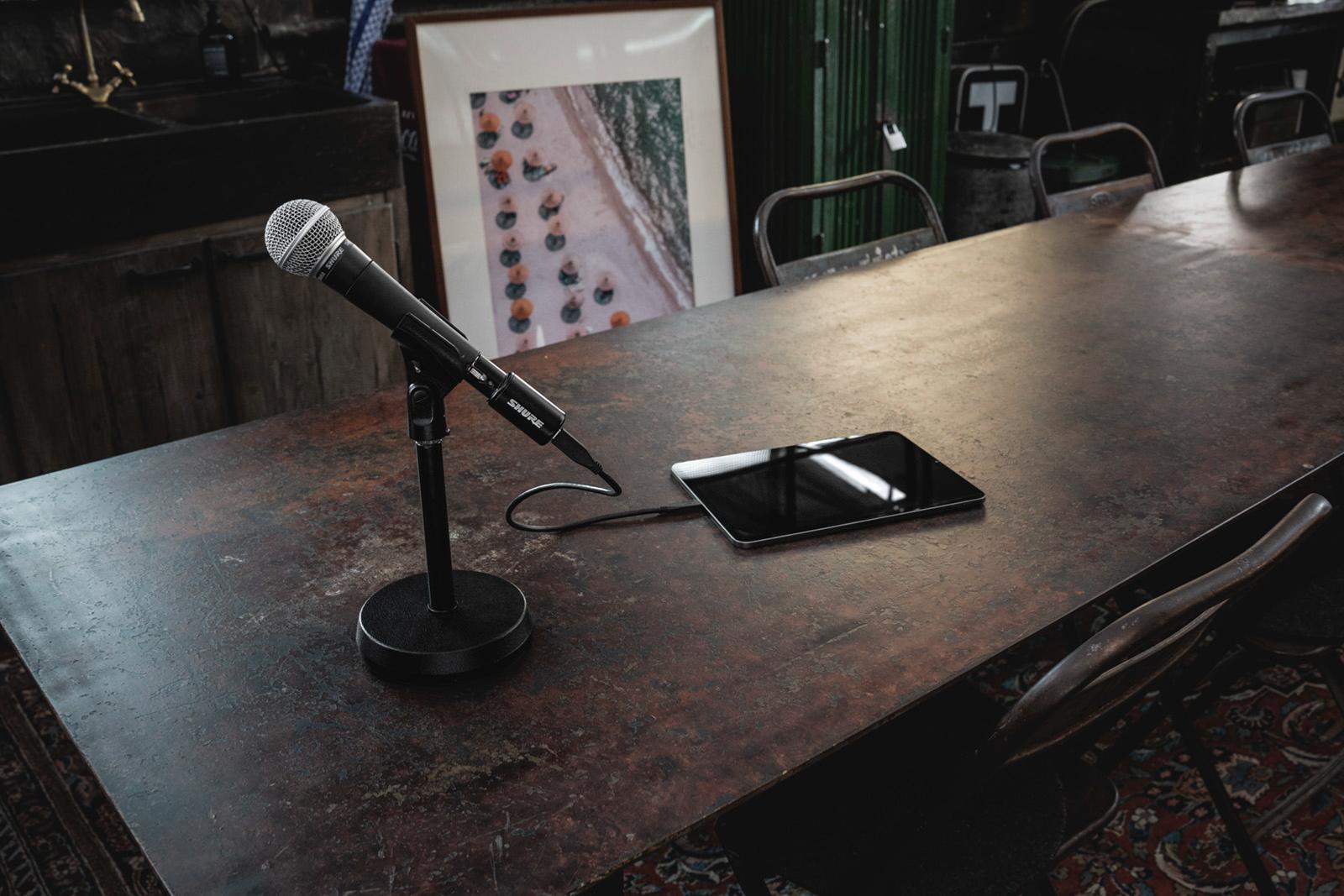 Les options de connexion enfichable ou en ligne permettent des configurations flexibles avec un encombrement minimal des câbles lors de la connexion d'un micro XLR à des appareils pris en charge.