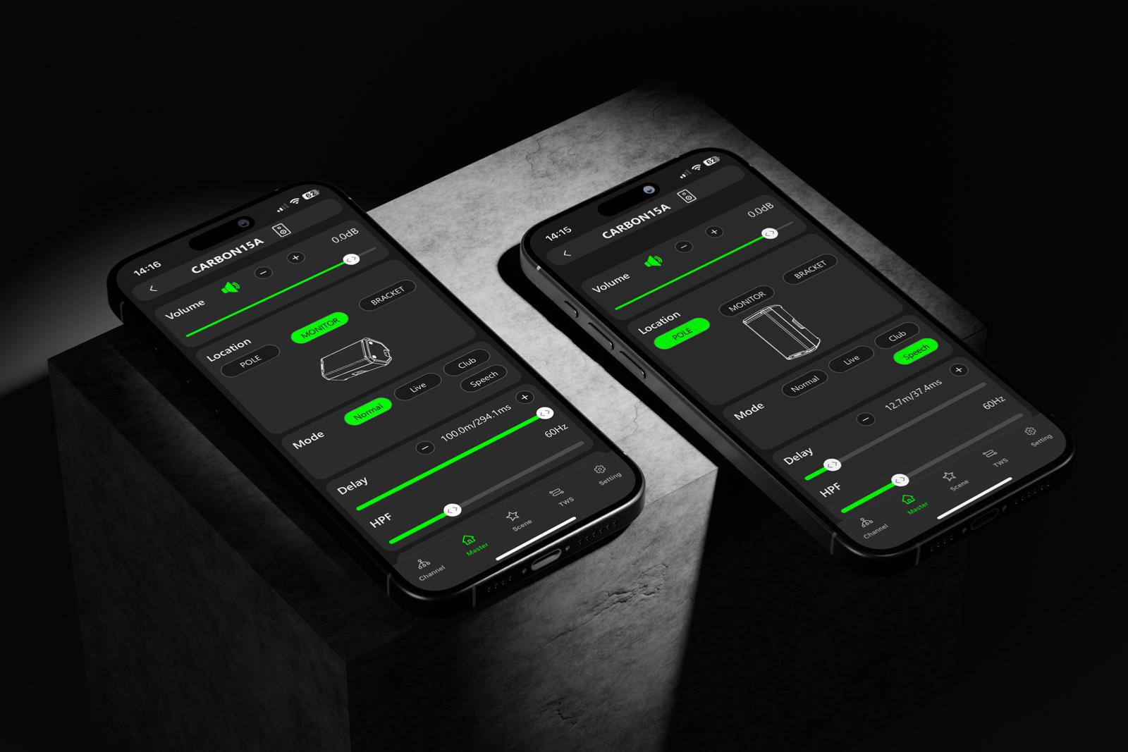 • Application de contrôle 4 voies avec setup, PEQ, scene, position, delay