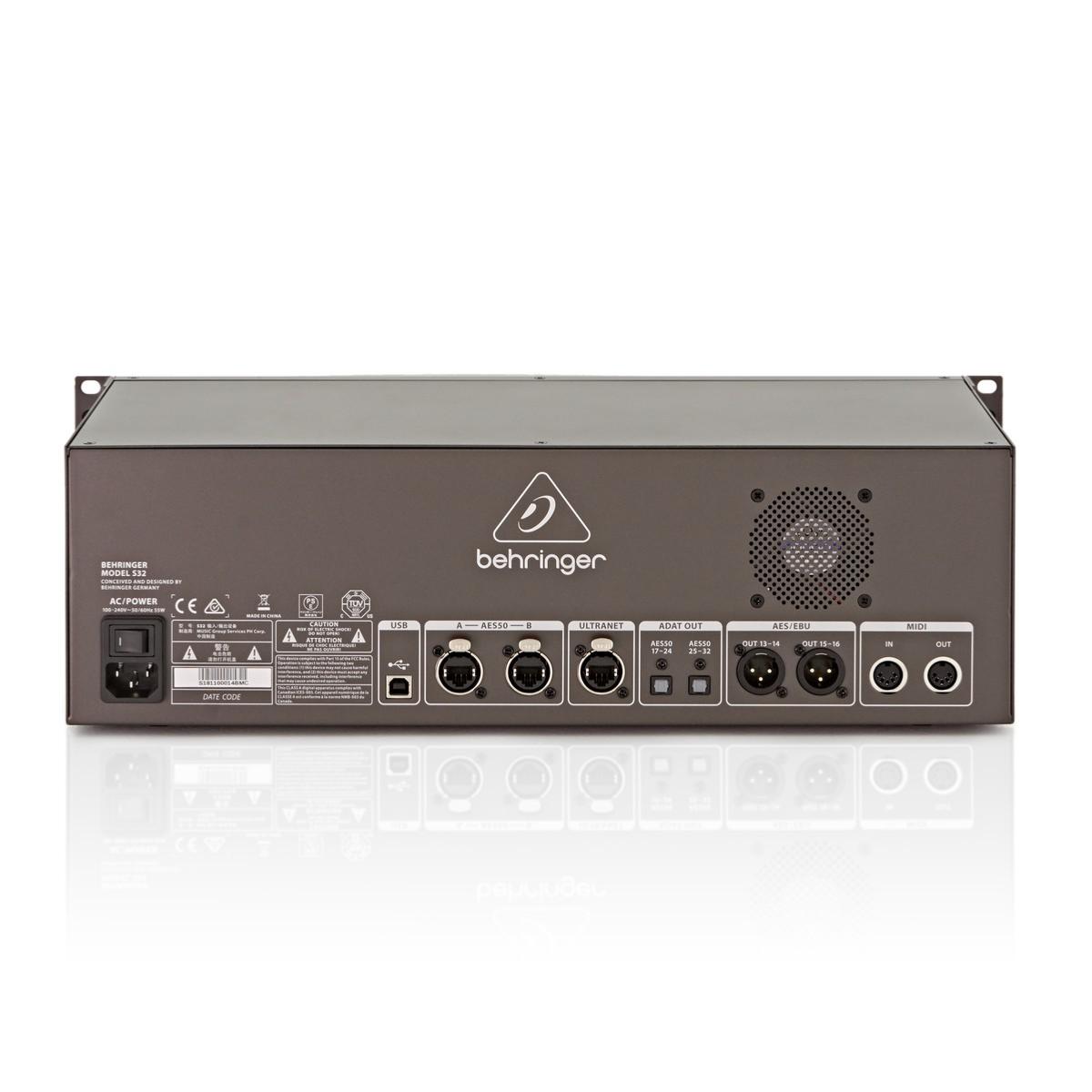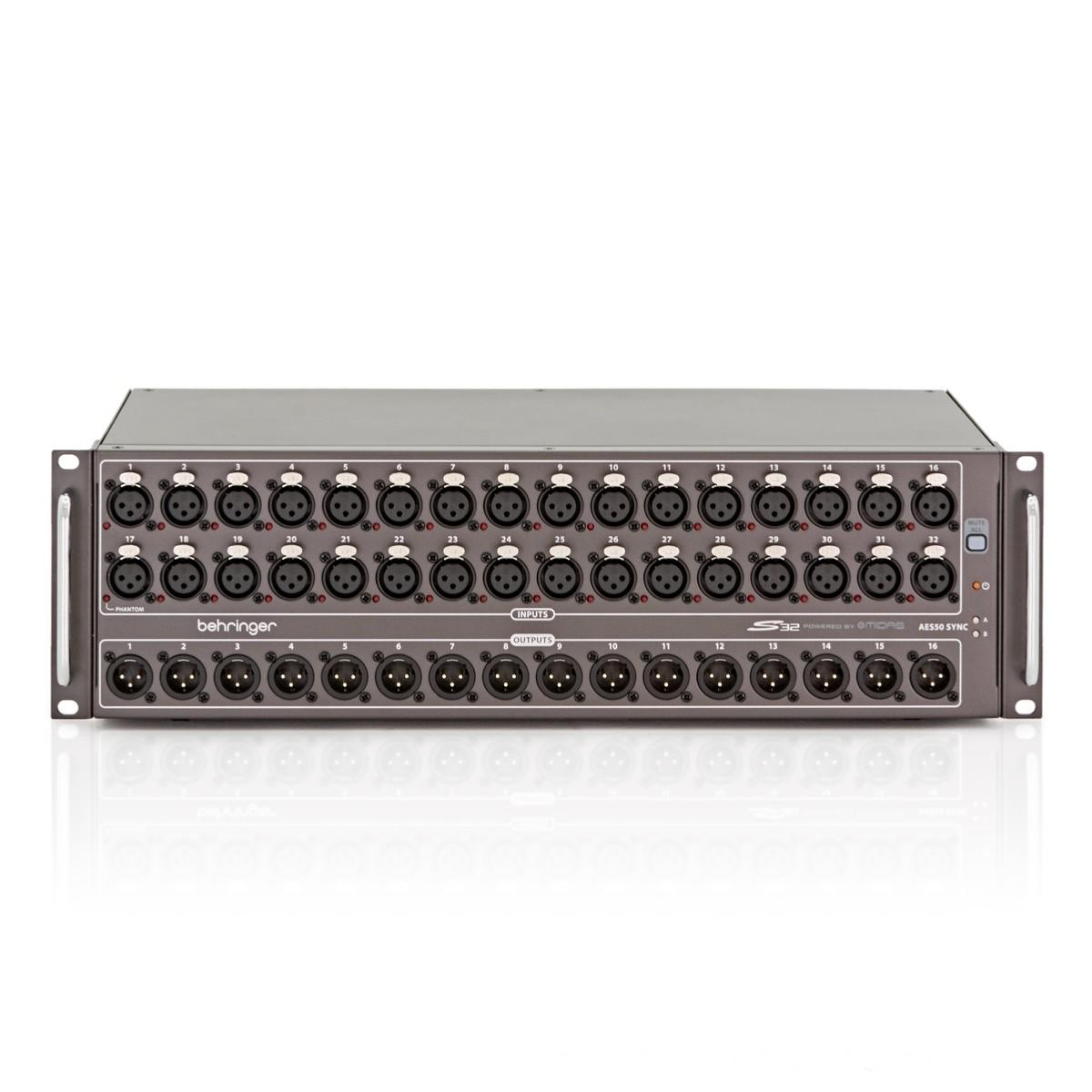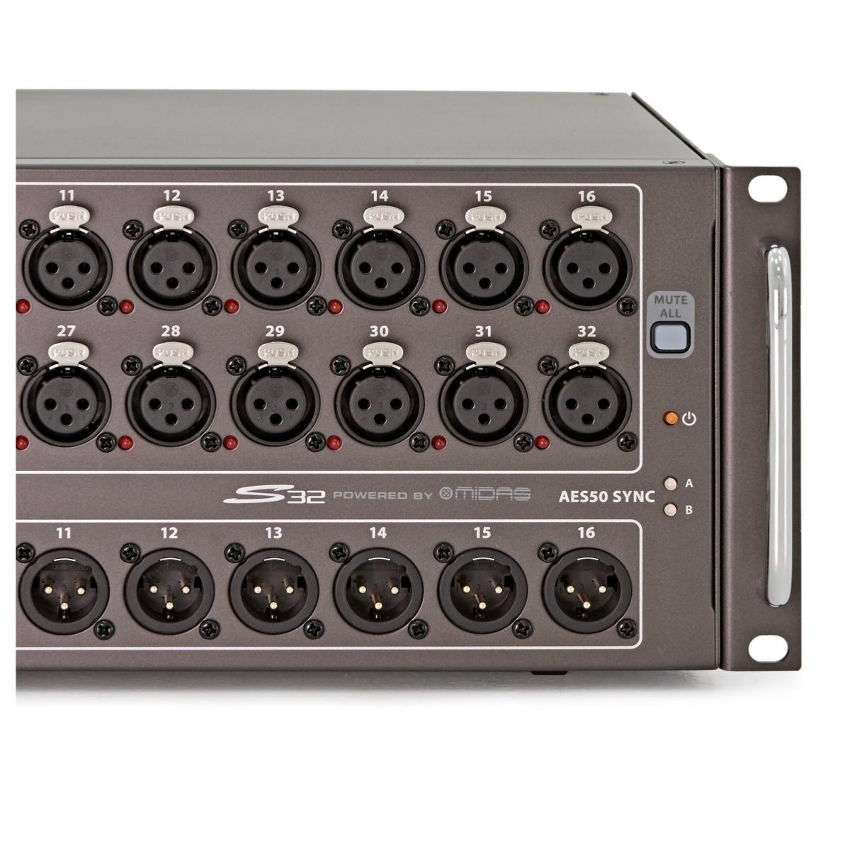 Le rack de scène S32 est la solution idéale pour des prestations Live. Il est raccordé à la X32 via le réseau AES50. Ce stage box numérique bénéficie d’un interfaçage total avec la surface de contrôle X32, s’affranchissant des multipaires analogiques et des traditionnels problèmes de «buzz» entre scène et régie.