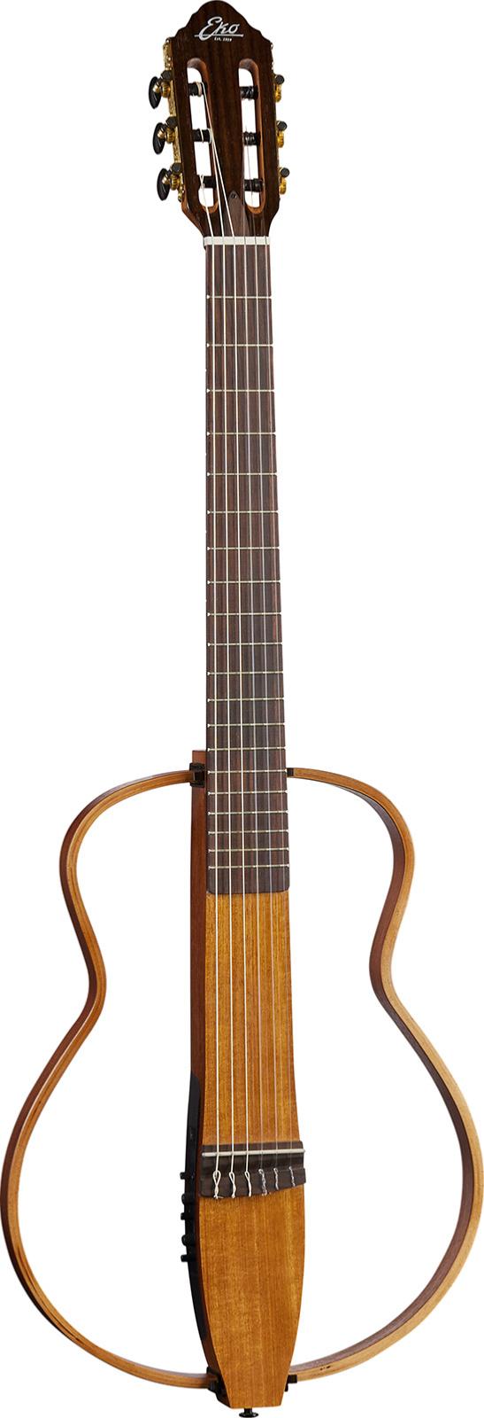 La Eko One S150e Silent Nylon respecte la douceur, la rondeur et la sensibilité des cordes nylon, tout en offrant une palette sonore élargie. Ses effets intégrés (chorus et reverb) permettent de personnaliser le son, qu’il s’agisse d’un jeu délicat fingerstyle ou d’un strumming énergique. Son préampli simple et efficace intègre également une égalisation 3 bandes ainsi qu’un accordeur chromatique. Que ce soit pour du classique, du flamenco ou de la bossa nova, elle met en valeur chaque nuance du jeu et stimule la créativité. Une guitare qui accompagne autant l’artiste nomade que le créateur en quête de nuances.