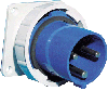 PCE • Socle mâle droit 633-6/P17 240V 63A 2P+T IP67 BLEU