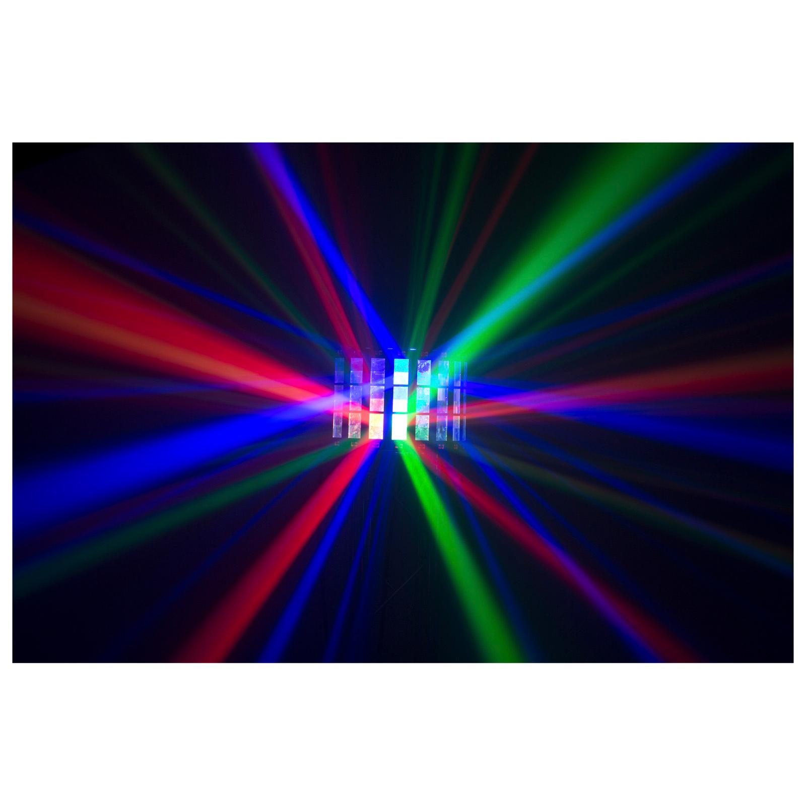 -Un effet Derby à LED projectant de puissants faisceaux rouge, vert, bleu et blanc.